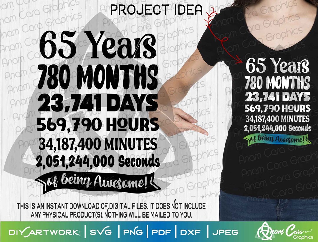 65th Birthday Svg 65 Years Old Svg 65th Birthday Png Etsy